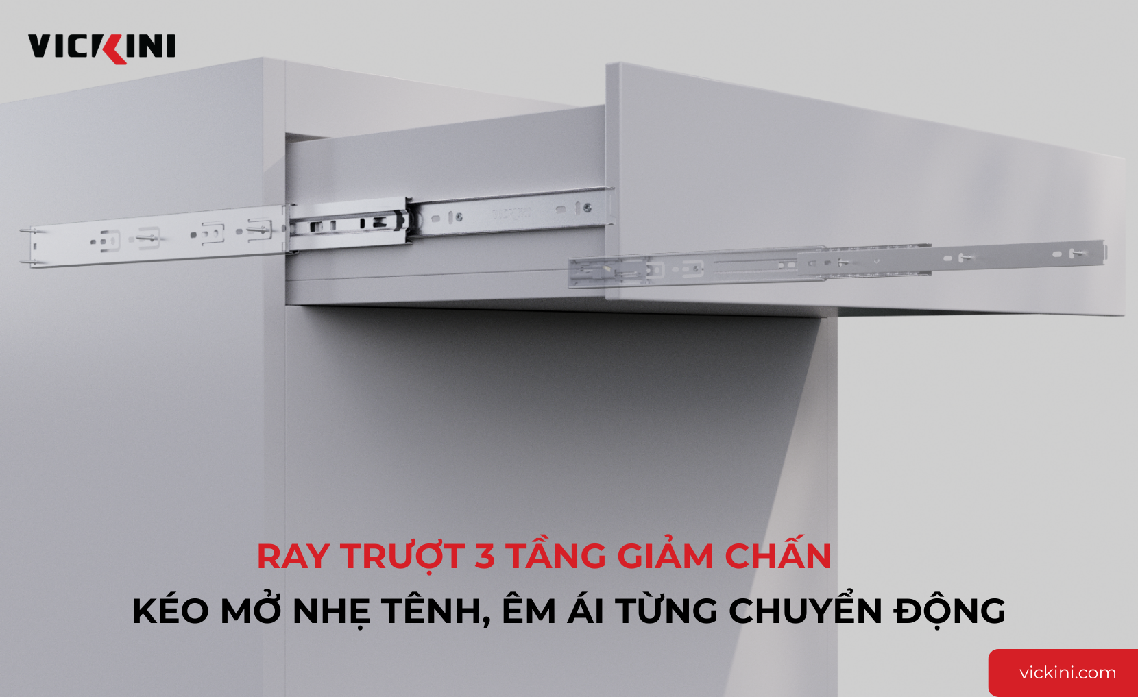 Trong thiết kế tủ hiện đại, không chỉ vẻ ngoài mà trải nghiệm sử dụng cũng là yếu tố được đặt lên hàng đầu. Và để mang lại cảm giác mượt mà, nhẹ nhàng khi kéo mở, ray trượt 3 tầng giảm chấn chính là giải pháp đang được ưa chuộng nhất hiện nay.