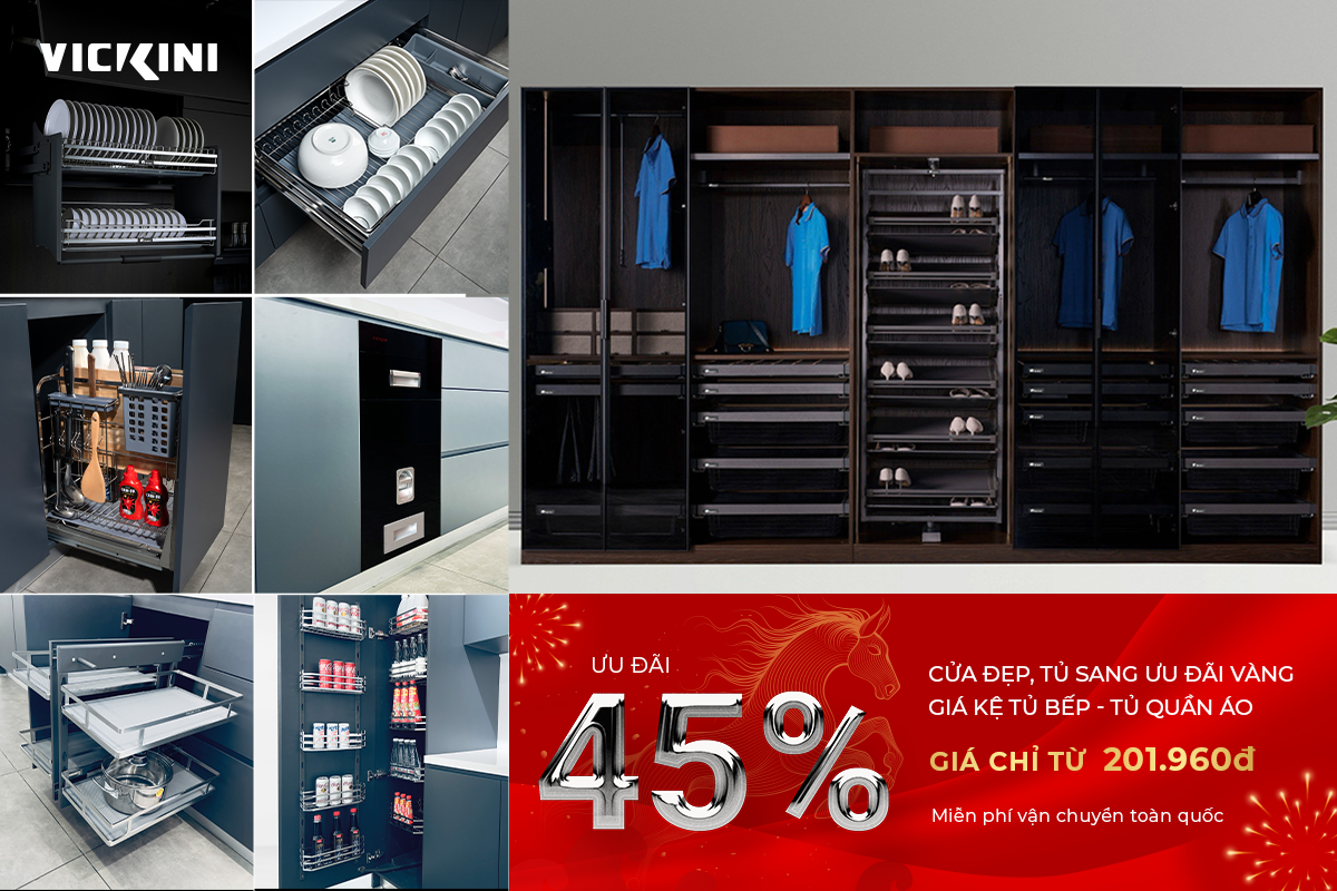 VICKINI tung chương trình khuyến mãi “ƯU ĐÃI VÀNG” cho một số sản phẩm phụ kiện tủ bếp & tủ quần áo:
