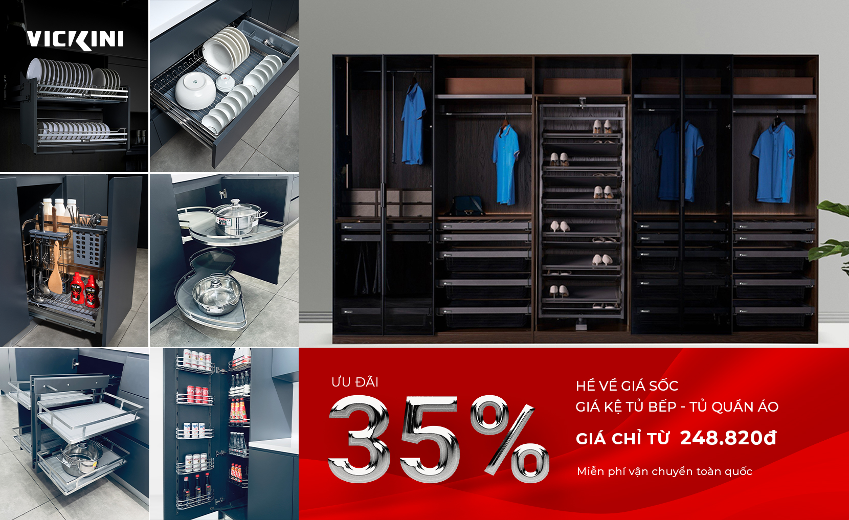 VICKINI tung chương trình khuyến mãi “HÈ VỀ GIÁ SỐC” cho một số sản phẩm phụ kiện tủ bếp & tủ quần áo: